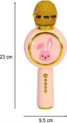 Ružičasto-zlatno kućište s motivom zečića osvaja na prvi pogled. Zvučnik 5 W i raspon 40 Hz–18 kHz daju pjevanju zabavan, čist zvuk.