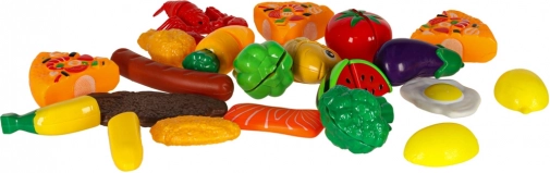 Voće i povrće dijeli se na dijelove pomoću čička/magneta; djeca ih mogu sigurno rezati plastičnim nožem i poslužiti na tanjuriće.