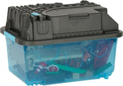 Čvrsta plava kutija služi tijekom igre kao element pruge, a nakon igre kao praktično spremište. Sve dijelove drži na jednom mjestu.