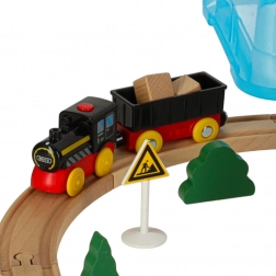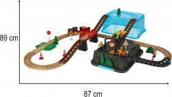 Otkrijte zabavnu drvenu željezničku stazu s 55 dijelova koja spaja svijet željeznice i gradilišta. U kompletu je samohodna lokomotiva (na AAA), bogat pribor uključujući most, dizalicu, prometne znakove, stabla i figurice, kao i praktična kutija za pohranu koja je dio same staze. Potiče kreativnost, maštu i razvoj fine motorike djece od 3 godine.