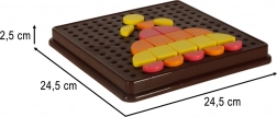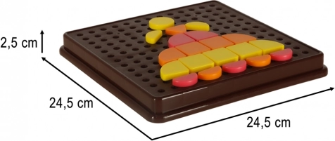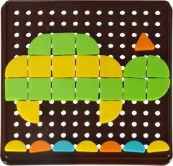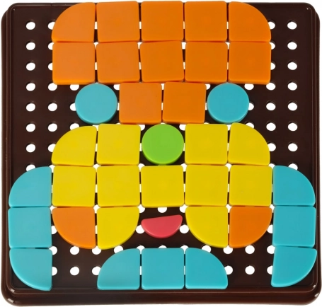 Ova mozaik slagalica donosi djeci beskrajne mogućnosti stvaranja. Šareni geometrijski dijelovi umeću se u perforiranu ploču, a djeca mogu stvarati vlastite slike ili se inspirirati priloženim karticama. Igra prirodno razvija koordinaciju oko-ruka, vizualnu percepciju i sposobnost razlikovanja boja i oblika.