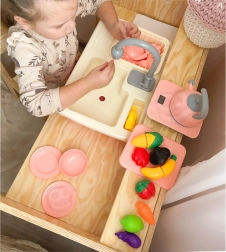 Djeca se lako igraju kuhara i pomagača u kućanstvu: poslužuju, režu, peru i pospremaju. Time nenametljivo usvajaju osnove higijene i ekološki pristup vodi, dok će roditelji cijeniti uredniji kutak za igru.