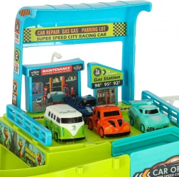 - 4 autića, volan, dizalo, dijelovi staze za sastavljanje, naljepnice, igraća gradska karta