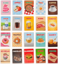 Sadrži 54 karte s raznim slikama hrane, trake za glavu i žetone. Ova igra osmišljena je tako da bude zabavna i zanimljiva i djeci i odraslima. Idealna je za jačanje socijalnih vještina i potiče fair-play. Zbog toga je savršen izbor za obiteljske večeri i druženja s prijateljima.