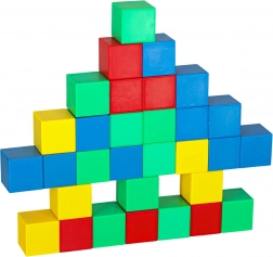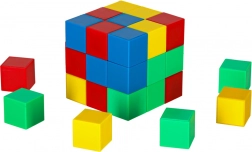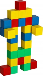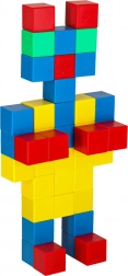 Set građevnih kockica sadrži 64 magnetske kocke, koje se povezuju pomoću magneta i omogućuju stvaranje raznolikih konstrukcija. Svaka kocka ima oblika kvadrata, što djetetu pruža mogućnost slobodne gradnje jednostavnih i složenijih struktura. Kocke su u intenzivnim bojama: zelenoj, žutoj, crvenoj i plavoj, koje privlače pažnju i potiču stvaranje šarenih projekata.