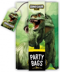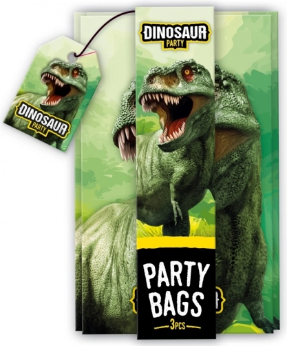 Party vrećice s motivom dinosaura idealne su za dječje rođendane i tematske zabave. Pakiranje od 3 komada s dimenzijama 13x21 cm (bez ručki).