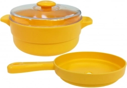 Lonac s poklopcem, tava, tanjuri, šalice i bočice za začine – sve što malom kuharskom majstoru treba.