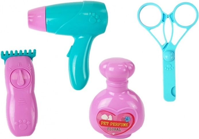 U pakiranju ćete pronaći i bogat set dodataka za njegu: dječji fen, mašinicu, škare i “parfem” za pse. Djeca se tako mogu igrati salona ljepote za životinje, razvijati finu motoriku i kreativnost.