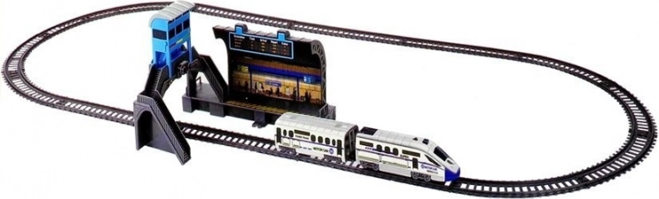 Ova željeznička staza donosi u dječju sobu autentičan svijet željeznice. Nakon sastavljanja dobit ćete stabilan krug dimenzija približno 106 × 44 cm, po kojem juri moderna bijelo-plava garnitura. Kolodvor, most i stanica daju igri realističnu atmosferu i potiču kreativne priče.