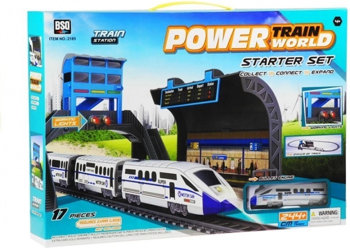 Otkrijte zabavni baterijski vlak-set s duljinom pruge od 244 cm i realističnim kolodvorom. Elegantna garnitura s lokomotivom i vagonom nudi svjetlosne efekte, jednostavno sastavljanje i sjajnu igru za djecu od 4 godine. Idealno za razvoj mašte, fine motorike i koordinacijskih vještina.