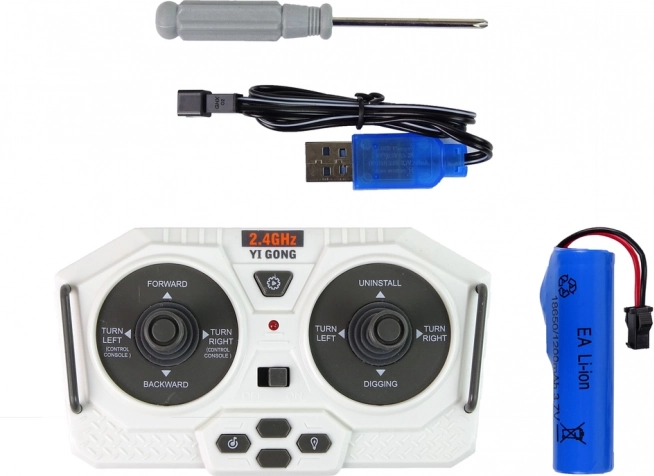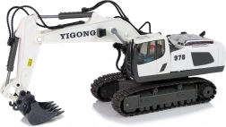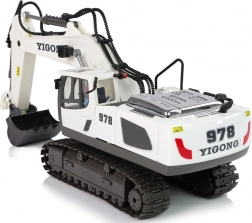 Ovaj daljinski upravljani bager bijele boje s crnim detaljima vjerno oponaša pravi građevinski stroj. Zahvaljujući tehnologiji 2,4 GHz izbjegavate smetnje i uživate u glatkom upravljanju. Upravljač s dva joysticka omogućuje vožnju naprijed/natrag i lijevo/desno, okretanje kabine te precizan rad sa žlicom.