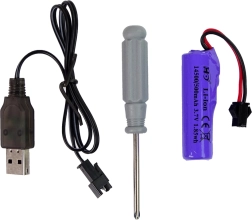 U pakiranju se nalazi punjiva baterija 3,7 V 500 mAh, USB punjač i alat za održavanje. Dovoljno je umetnuti AA baterije u upravljač i krenuti.