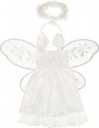Kostim anđelčića za djecu je idealni izbor za Božić, Noć vještica ili tematske zabave i jamči nezaboravno iskustvo. U kompletu su bijela haljina, obruč za kosu s aureolom i svjetlucava krila.