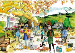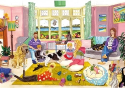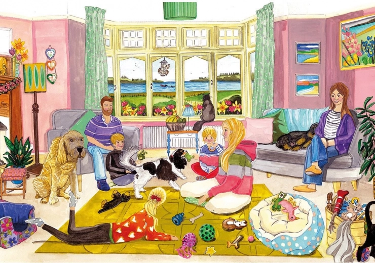 Otkrijte četvorku detaljnih ilustracija koje prikazuju radosne trenutke sa psima – od šetnji prirodom do obiteljske ugode. Svaka slagalica dimenzija približno 49 × 34 cm donosi šarenu scenu i kvalitetan tisak koji ističe fine detalje i živopisne boje. Slaganje je glatko i ugodno zahvaljujući preciznim izrezima.