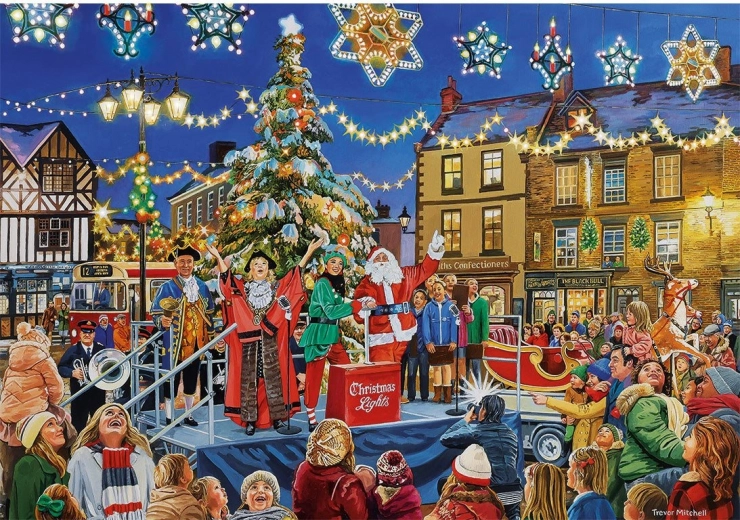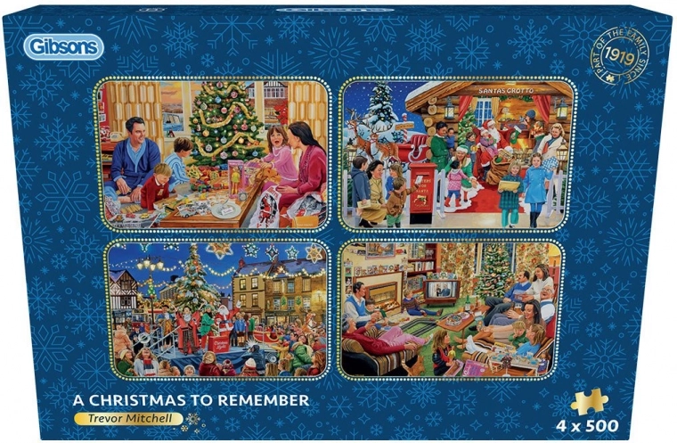 Uđite u čarobni svijet Božića s premium setom od četiri puzzle brenda GIBSONS. Svaka slagalica ima 500 dijelova i nakon slaganja mjeri približno 49 × 34 cm, pa je idealna za stol ili podlogu za puzzle. Ilustracije prikazuju tople obiteljske trenutke, svečano ukrašene trgove i božićnu radost koja će vas uvesti u blagdansko raspoloženje.