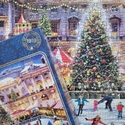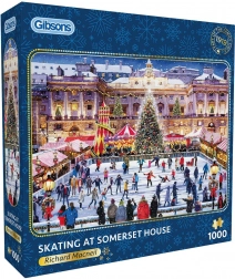 Puzzle "Klizanje kod Somerset Housea" prestižne marke Gibsons utjelovljuju zimsku ugodnost i čaroliju Božića. Na fascinantnoj ilustraciji Richarda Macneila možete vidjeti klizače kako kližu po klizalištu, koje je prekrasno osvijetljeno božićnim svjetlima i okruženo štandovima s toplim napitcima i poslasticama. Ovaj će motiv unijeti atmosferu londonske božićne bajke u vaš dom.