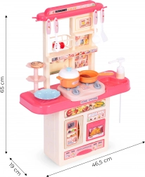 Ova dječja kuhinjica imitira pravu kuhinju i motivira djecu na kreativnu igru kuhara. Nakon uključivanja plamenika čuje se zvuk kuhanja i istovremeno se upale crvene LED lampice. U spremnik se može uliti voda, a preko pumpice teče voda iz pipe, što povećava realizam igre.