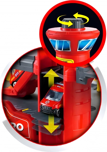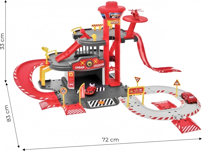 Vatrogasna garaža, 3 razine s dizalom, auti + helikopter, 74 komada