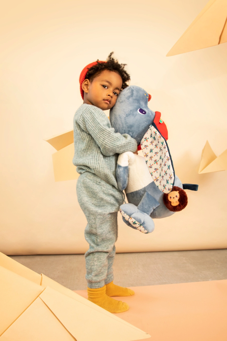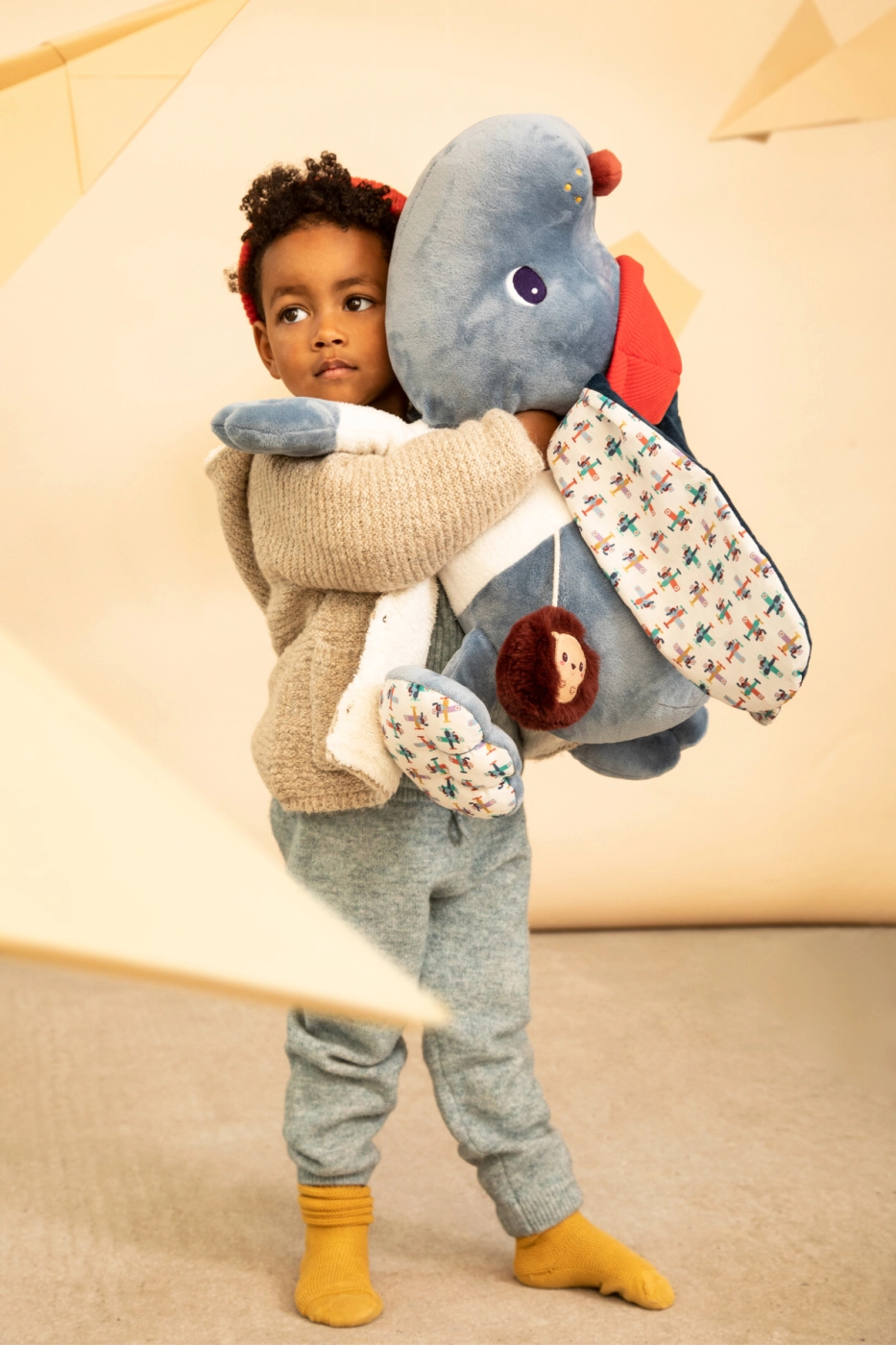 Materijal: 100% reciklirani poliester, punjenje od 100% recikliranog poliestera. Dimenzije igračke su 55 x 22 x 26 cm. Može se prati ručno.