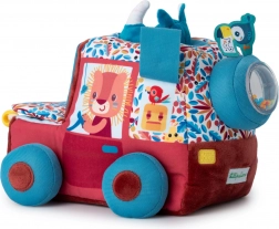 Ovaj mekani aktivnostni autić s lavom Jackom i nosorogom Mariom idealan je pratitelj za male istraživače. Nudi mnogo poticaja: kontrastne boje, razne materijale za opipavanje, sigurno zrcalo i zabavne elemente koji motiviraju djecu na hvatanje, stiskanje i guranje.