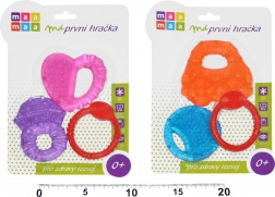 Praktični set rashladnih grizala pruža bebama trenutačno olakšanje tijekom nicanja zubića. Grizala su od mekog, sigurnog materijala, neka punjena destiliranom vodom ili gelom za ugodan osjećaj hlađenja nakon držanja u hladnjaku. Ergonomski oblik omogućuje lako držanje, masira desni i potiče djetetovu vizualnu i taktilnu stimulaciju. Pakiranje sadrži 2 grizala i spojni prsten.