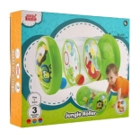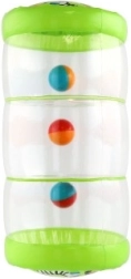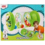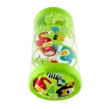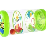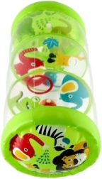Valjak je ukrašen šarenim ilustracijama životinja i sadrži tri loptice koje pri pokretu nježno zvečkaju, što zabavlja i stimulira djecu.