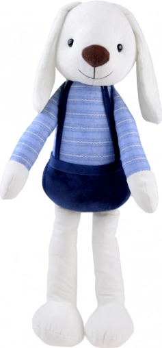 Presladak plišani zečić visine 60 cm izrađen je od iznimno mekanog i ugodnog materijala. Ima plastične oči, izvezen njuškicu i šarmantan osmijeh. Odjeven u prugastu majicu i tregerice postaje idealan prijatelj za igru, čitanje bajki i maženje prije spavanja.