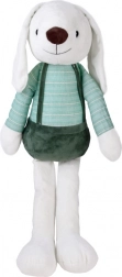 Preslatki plišani zec visine 60 cm u prugastoj majici i zelenim tregerima razveselit će svako dijete. Izrađen je od iznimno mekog, baršunastog materijala, ima vezen nosić, sigurne plastične oči i prijateljski osmijeh – idealan za maženje, igru i spavanje.