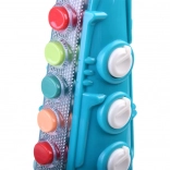 Ovaj šareni dječji saksofon potiče osjećaj za ritam, glazbenu percepciju i motoriku. Nakon uključivanja dijete dočekuje vesela melodija, a osvijetljeni elementi zasvijetle. Može slušati gotove skladbe ili svirati vlastite – puhanjem u usnik i pritiskanjem tipki kao na pravom instrumentu.