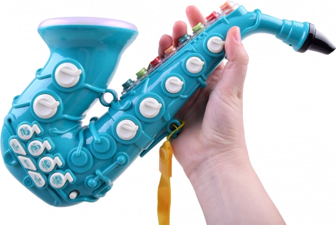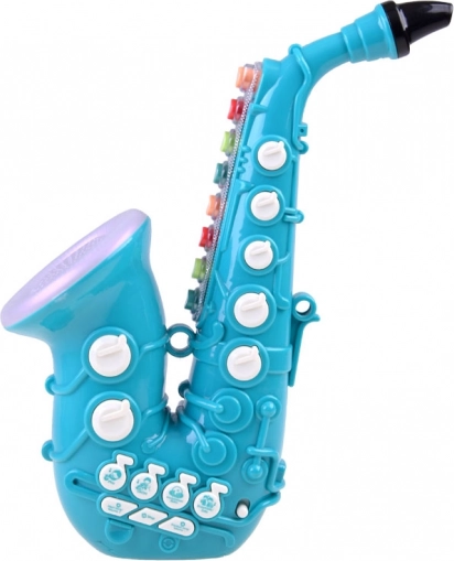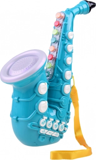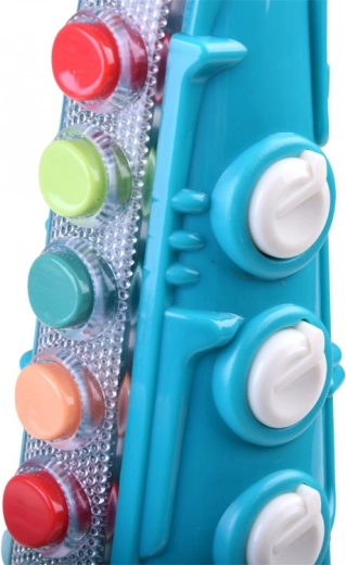 Ovaj šareni dječji saksofon potiče osjećaj za ritam, glazbenu percepciju i motoriku. Nakon uključivanja dijete dočekuje vesela melodija, a osvijetljeni elementi zasvijetle. Može slušati gotove skladbe ili svirati vlastite – puhanjem u usnik i pritiskanjem tipki kao na pravom instrumentu.