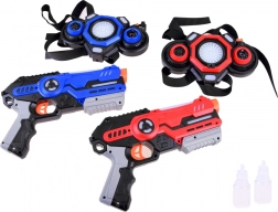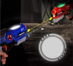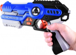 Uživajte u akcijskoj zabavi kod kuće i na otvorenom s kompletnim setom za 2 igrača. Svaki igrač dobiva laserski pištolj i prsluk s metom s brojačem života. Jednostavno uparivanje, odabir tima (4 boje) i tipa oružja, realistični zvukovi, svjetla i vibracije pri pogotku te domet do 40 m jamče napetu, a istodobno sigurnu igru bez metaka.