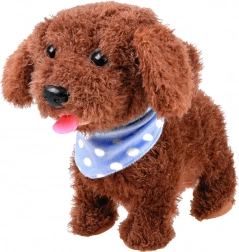 Ovaj slatki plišani psić na povodcu idealan je izbor za djecu koja žude za vlastitim ljubimcem. Nakon umetanja baterija i uključivanja prekidača reagira na maženje i dodir – oglasi se veselom lajanjem, cviljenjem i radosno maše repom. Gumbom na povodcu lako se pokreću hodanje i zvukovi.