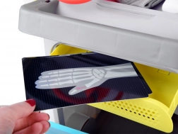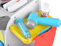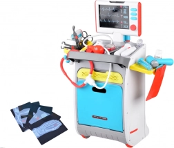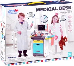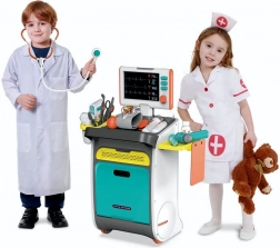 Kompletna dječja liječnična garnitura na pokretnim kolicima donosi realističnu igru doktora već od 3 godine. Sadrži interaktivne alate, monitor EKG/RTG sa zvukom, pumpicu i sterilizator alata, odlagne police i ladice te mjerilo visine do 112 cm. Čvrsta izrada i žive boje potiču kreativnu i edukativnu igru.