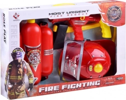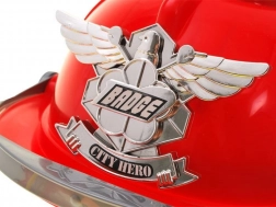 Crvena dječja kaciga s prozirnim vizirom upotpunjuje vatrogasni izgled, a zahvaljujući svjetlosnim i zvučnim efektima daje igri dodatni realizam. Podesiv opseg za udobno nošenje.
