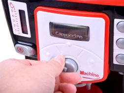 Bočne tipke omogućuju podešavanje veličine šalice ili pokretanje pjenjenja mlijeka. Djeca mogu isprobati kako radi pravi aparat za kavu.