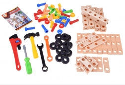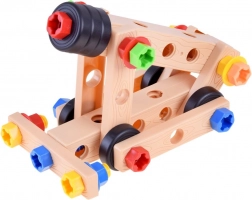 Ovaj kreativni set idealan je izbor za male konstruktore. Zahvaljujući promišljenom sustavu otvora u “drvenim” plastičnim letvicama i šarenim vijcima, dijelovi se lako spajaju i stvaraju stabilne modele. Djeca kroz igru uvježbavaju koordinaciju oko–ruka, spretnost i strpljenje.