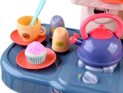 Dio seta su prostrana radna površina, kukice za vješanje pribora, police, otvarajuća vrata hladnjaka i pećnice te stilski aparat za kavu na kapsule. Bogata oprema od 42 dodatka potiče kreativnu igru, igranje uloga i razvoj socijalnih vještina.