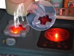 Ploča za kuhanje simulira ključanje i kuhanje s 3 razine glasnoće, plamenik svijetli i ispušta paru za još realističniju igru.