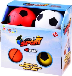 Tri loptice u nogometnom stilu (bijela, žuta, crvena) i jedna košarkaška donose raznolikost igri i treningu.