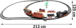 Ova pažljivo izrađena električna željeznička staza oduševit će male i velike zaljubljenike u vlakove. Parna lokomotiva tijekom vožnje svijetli prednjim svjetlom, proizvodi zvukove pravog vlaka i nakon dodavanja vode stvara efekt dima iz dimnjaka. Zahvaljujući daljinskom upravljanju, brzina i smjer su vam uvijek pod kontrolom.