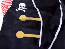 Lobanja i prekrižene kosti, zlatni obrubi i prugasti rukavi stvaraju efektan izgled koji će se istaknuti na svakoj zabavi.