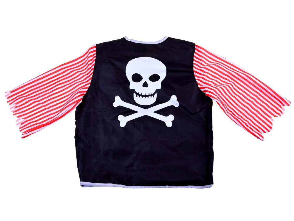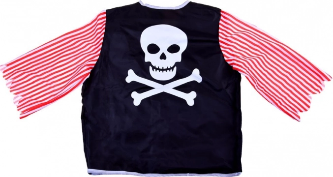 Pretvorite svoje dijete u odvažnog korsara u trenu. Ovaj piratski kostim spaja upečatljiv dizajn s praktičnim dodacima, zbog čega je idealan za igru kod kuće i tematske zabave. Bluza s motivom lubanje i prekriženih kostiju, prugasti rukavi i šešir s lubanjom stvaraju autentičan piratski izgled.