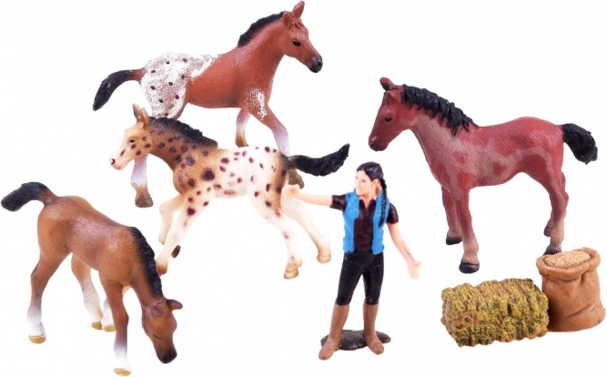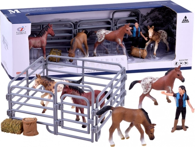 U pakiranju ćete pronaći domaćicu – skrbnicu stada, četiri preslatka ždrjebeta u različitim bojama te elemente ograde koji omogućuju stvaranje sigurnog prostora za konjiće. Tu su i vreća zobi i bala sijena – sve za autentičnu farmersku atmosferu.