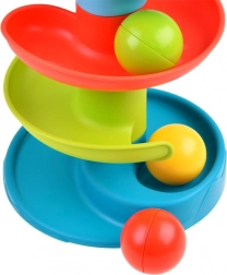 Puštanje kuglica s vrha i njihovo hvatanje dolje prirodno vježba finu motoriku i koordinaciju oko–ruka, dok dijete prati tečan pokret niz spiralu.