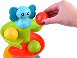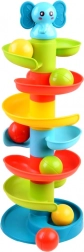 Zabavna staza s kuglicama sa slonićem nudi djeci sate igre i razvoja vještina. Visoka spiralna kula sa šest katova i simpatičnim slonićem na vrhu potiče finu motoriku, koordinaciju oko–ruka i osjetilnu percepciju. Pustite šarene kuglice s vrha i promatrajte kako se kotrljaju niz spiralne rampe sve do dna uz veselo zveckanje. Izdržljiva izrada od kvalitetne plastike i sigurni zaobljeni oblici idealni su za najmlađe.