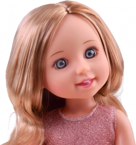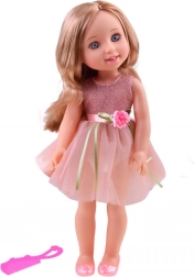 Ova elegantna lutka u nježno ružičastoj, sjajnoj haljini idealna je za igru bala, čaja u pet i svakodnevne priče. Dugu plavu kosu može se češljati, uređivati i ukrašavati u različite frizure, što potiče dječju maštu i finu motoriku.