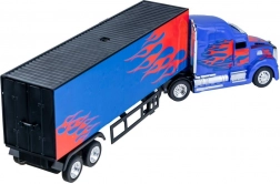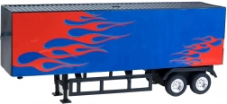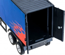 Izvrsna igračka za sve male ljubitelje motornih vozila koji sanjaju o vožnji američkog tegljača. Ovaj kamion s prikolicom na daljinsko upravljanje u plavoj i crvenoj boji s vatrenim detaljima donosi ne samo estetski doživljaj, već i funkcionalne značajke. Izrađen je od plastike, što jamči izdržljivost i jednostavno rukovanje. Sastavni dio je odvojiva prikolica i vrata koja se otvaraju za utovar robe, što pridonosi realističnosti igre.
