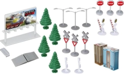 Nudimo siguran proizvod, certificiran prema europskim normama CE i prikladan za djecu od 4 godine. S dimenzijama pojedinih dijelova: lokomotiva mjeri 13 x 3 x 4 cm, vagoni 11,5 x 3 x 3,5 cm, stabla su visoka 7,5 cm, a prosječne dimenzije zgrada su 5 x 11 x 5 cm, zajamčene su razne mogućnosti izgradnje i igre.
