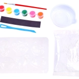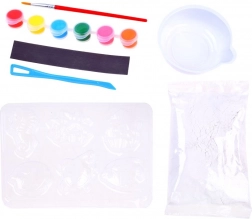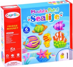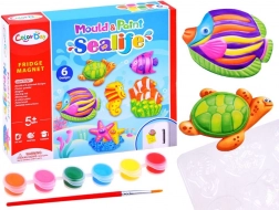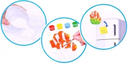 Kreativni set 'uradi sam' za izradu i bojanje magneta idealan je poklon za djecu s umjetničkom dušom. Set omogućava izradu 6 različitih magneta s motivima podvodnih stvorenja poput ribica, morskog konjića, zvjezdača i kornjača. Djeca mogu prema svojoj mašti pripremiti kalupe i zatim ih obojiti.