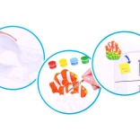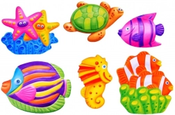 Ovaj kreativni set nudi djeci uzbudljivu mogućnost stvaranja i bojanja raznih oblika životinja iz podvodnog svijeta, razvija kreativnost i finu motoriku.